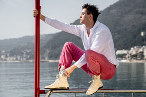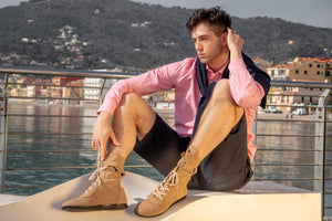 La ricerca della perfezione si estende anche alla calzata: il Cliente può indicare la lunghezza esatta di ciascun piede, così da ottenere un comfort autenticamente sartoriale, impossibile da replicare con le taglie standard. A completare il processo, la selezione dei materiali prevede pelli di vitello pieno fiore, camoscio o vernice, declinate in una tavolozza di più di quaranta colori che spaziano dal cognac al maggese, dal cipria al sabbia, fino alle tonalità più chiare e contemporanee come il ghiaccio.